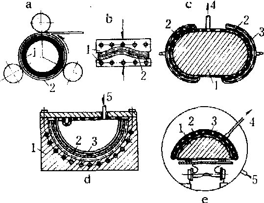 | 释义 | 模压制品moulding products施加过胶粘剂的单板、刨花或纤维(也可是未施胶纤维),分别铺装于专用模具中,经热压成型而成的木材制品。需要时可在毛坯上加覆胶膜纸或其他材料。这种制品力学性能优良,表面装饰效果好,一次成型不需再行加工,生产效率高,很少或没有边角废料,原材料得到充分利用,能制造多种异型产品。但模具设计要求严,加工费用大,主要用于制造数量大的定型产品。模压制品可分为单板模压制品、纤维模压制品和刨花模压制品。 图1 单板模压成型的几种方法 纤维模压制品 将纤维装入模内,热压成型,可制门扇面、汽车部件和木瓦等。其工艺流程以门扇面为例,如图2所示。取未加工成型的半硬质纤维板,先增湿,再在板坯两面各铺一张酚醛浸渍皱纹胶膜纸,然后置入模具内,也可在板坯中加一张同样的胶膜纸增强。将装有坯料的模具放入两层的热压机,以2.65兆帕的压力和160℃温度热压即成。也可将纤维置于模具内预压成毛坯,再经热压模热压成型。 刨花板模压制品 刨花模压技术于20世纪50年代兴起。其工艺方法主要有通用模压法、箱体模压法