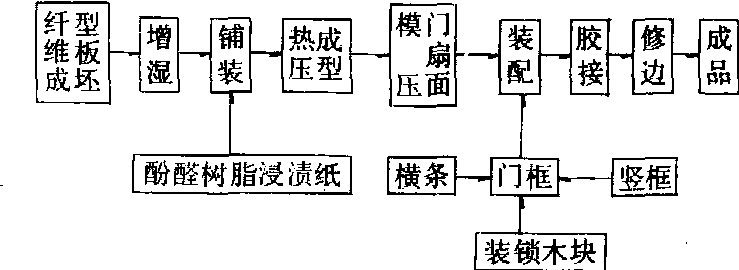 图2 模压门扇工艺流程示意 和密封模压法3种。其中通用模压法发展快,现在一般讲的刨花模压法是指此法。刨花模压制品种类多、用途广,主要有四大类:建筑构件(图3),如墙板、天花