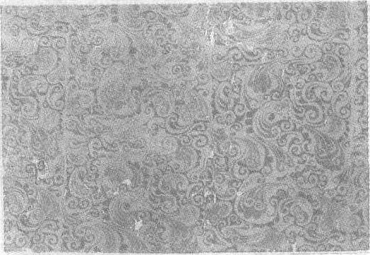 | 释义 | 橙黄色绢地长寿绣西汉。长57厘米,宽40.5厘米。1972年湖南省长沙市马王堆1号墓出土。湖南省博物馆藏。“长寿绣”是在平织绢上织出穗状流云纹,并配云纹和小圆点纹的丝织品。此件长寿绣以黄绢为地,织有浅茶色、紫灰色、橙色流云纹和浓绿色云纹。在花纹中缀以三个橙色小圆圈。花纹单位长23厘米,宽16.5厘米。