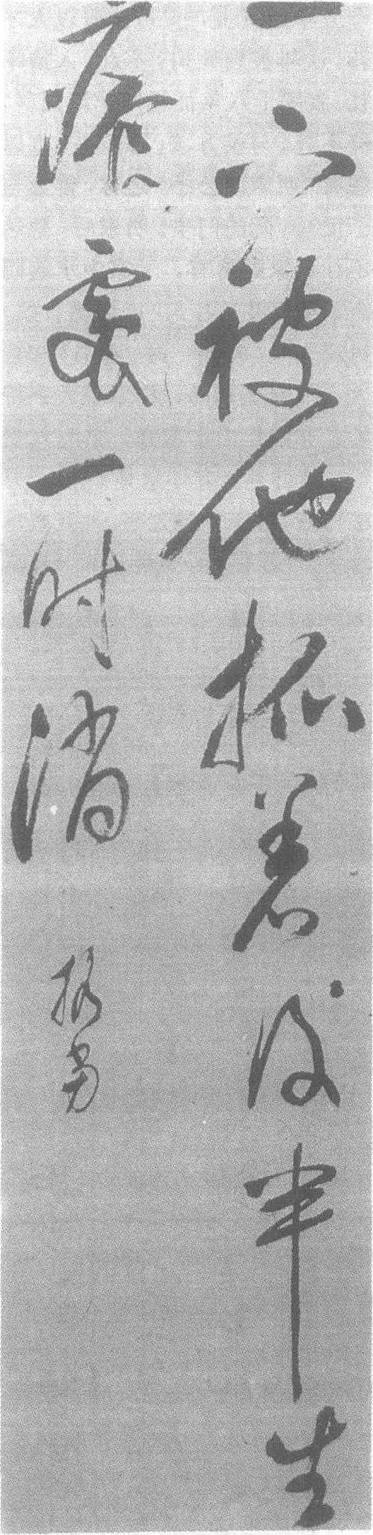 | 释义 | 檐当行草书语摘清。纸本。行草书。纵131厘米,横30厘米。四川省重庆市博物馆藏。擔当(明万历二十一年—清康熙二十二年,即公元1593—1683年),本姓唐,名泰,字大来,号擔当,云南晋宁人。天启年间曾以明经应召入封,明亡,薙发为僧,隐鸡足山,法名普荷。曾侍陈继儒,称门下士。工诗善画,山水师法黄公望、倪瓒。书法学董其昌,在流畅豪放之中有凝重沉着的笔意。著有《脩园集》、《橛庵草》。此行草书语摘:“一下被他抓着后,半生痒处一时消。”款署:“擔当”。此行草用笔峻拔奇侧,结字偏长而俊逸,熟而不俗,险而不怪,奇正相合,乘势相接而下。布局错落有致,气势贯通,有痛快淋漓之感。
