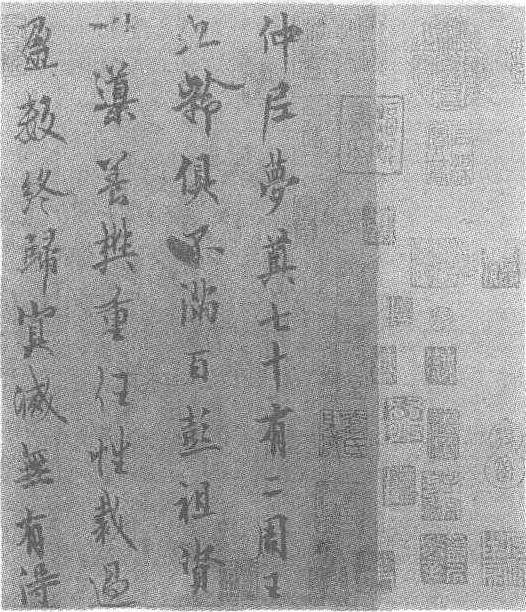 | 释义 | 欧阳询行书仲尼梦奠贴唐。纸本。25.5厘米,横16.5厘米。辽宁省博物馆藏。欧阳询(南朝·陈永定元年——唐贞观十五年,即公元557—641年),字信本,潭州临湘(今湖南长沙)人。陈朝大司空欧阳頠之孙。其父欧阳纥,是陈朝的广州刺史,以谋反被诛。陈朝尚书令江总与纥相好,而加以教欧阳询书学。欧阳询聪悟绝伦,博览经史,尤精三史。仕隋为太常博士。高宗即位,累迁给事中,后至银青光禄大夫、太子率更令、弘文馆学士,封渤海县男。欧书法初学王羲之及北齐三公郎中刘珉,后渐变其体,自创一体,人称“欧体”,为一时之绝。与虞世南、褚遂良、薛稷并称初唐四大书家。宋《宣和书谱》云:“询喜字,学王羲之书,后险劲瘦硬,自成一家。议者以谓真行有献之法。”清梁巘《评书帖》云:“颜不及欧,欧以劲胜,颜以圆胜。欧书力健而墨圆,后世学者不免匾削。欧书劲健其势紧,柳书劲健其势松。”宋欧阳修《集古录》云:“隋之晚书学尤盛,吾家率更与虞世南皆当时人,后显于唐,遂为绝笔。”传世书迹有《皇甫诞碑》、《化度寺邕禅师塔铭》、《九成宫醴泉铭》、《卜商帖》、《张翰帖》、《千字文》等。书论有《付善奴传授诀》、《用笔法》等。《旧唐书》卷百八十九上、《新唐书》卷百九十八皆有传。此幅行书梦尊帖,前后钤有:<御府法书>、<绍兴>、<福祧书府>、<赵氏子昂>、<项子京家珍藏>、<高士奇图书记>、乾隆、嘉庆、宣统御览之宝等鉴藏印,卷后有郭天锡、赵孟頫、高士奇、王鸿绪等题跋。其书吸收了王右军的笔意,笔力险劲,字体清劲秀健,章法布局行气奇斜有度,错落有致。用笔直与《兰亭》相似,既有《九成宫》紧凑的特点,又有《兰亭》清丽潇洒的遗韵。是传世欧书中最珍贵难得的书法艺术珍品。
