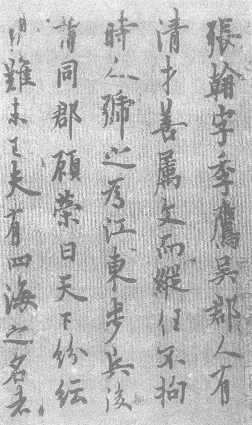 | 释义 | 欧阳询行楷书张翰帖唐。纸本。纵25.2厘米,横33厘米。曾经南宋绍兴御府、清安岐等收藏,现北京故宫博物院藏。欧阳询(南朝梁太平二年—唐太宗贞观十五年,即公元557—641年),字信本,潭州临湘(今湖南长沙)人。隋时为太常博士。入唐官至太子率更令,弘文馆学士,银青光禄大夫,封渤海县南。工书法,学二王及北齐名家,劲健刻厉,险绝峭拔,自成面目,为世人所推重,称“欧体”。此帖亦称《季鹰帖》,《思鲈帖》,行楷书:“张翰字季鹰。吴郡人。有清才。善属文。而纵性不拘。时人号之江东步兵。后谓同郡顾荣曰:‘天下纷纭。口难未已。夫有四海之名者。求退良难。吾本山林间人。无望于时。子善以明防前。以智虑后。’荣执其(疑缺一字),怆然。翰因见秋风起。乃思吴中菰菜鲈鱼。遂命驾而归。”纸后有赵佶瘦金书跋。《宣和书谱》、《墨缘汇观》、《大观录》有著录。刻入《三希堂法帖》。