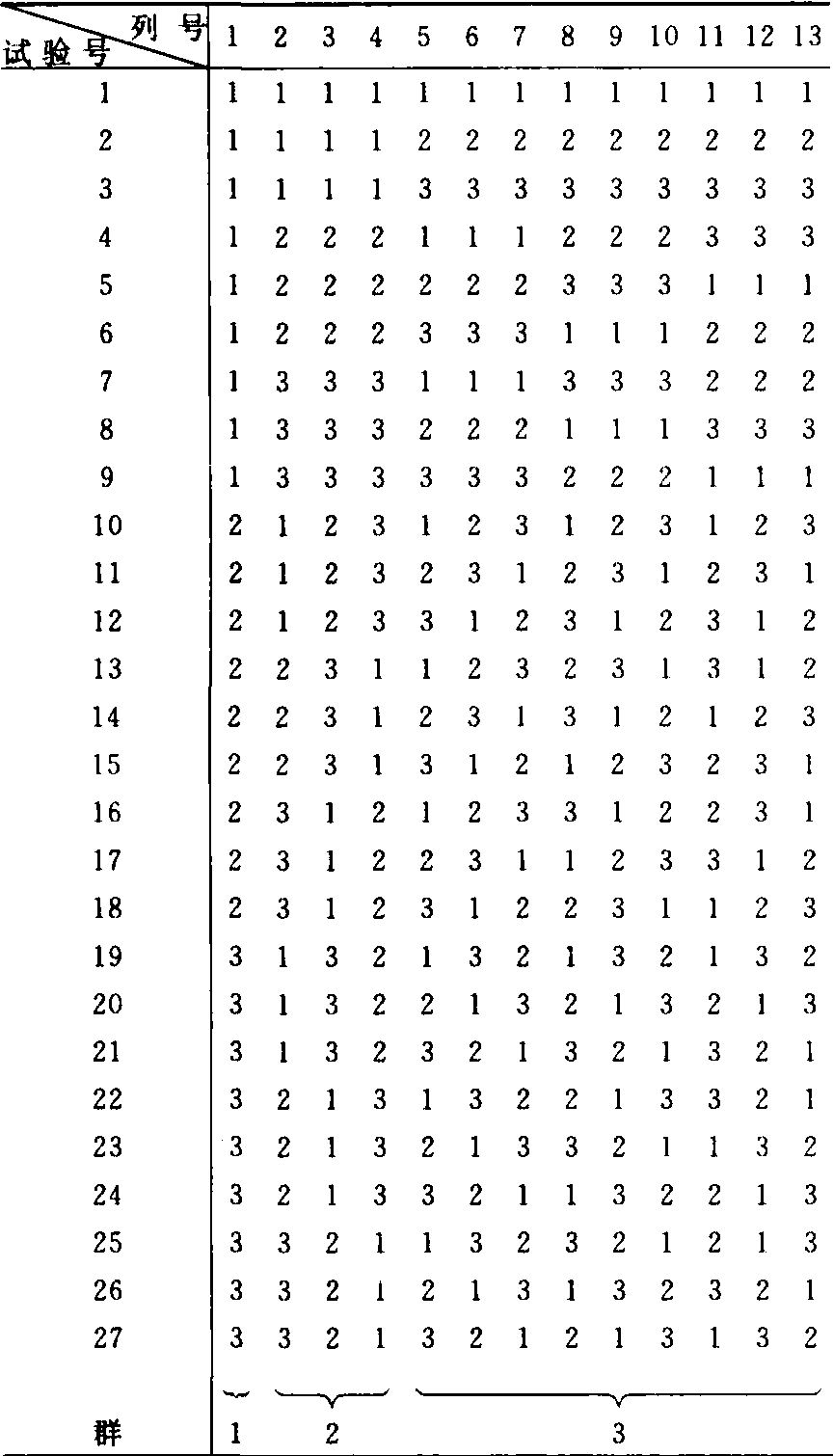 L27(313)正交表的交互作用表如下: 表5 L27(313)二列间的交互作用