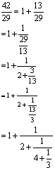任一个有限正则连分数,只要从最下面开始逐步化简,总能化成一个正有理分数p/q(p,q ∈N).故知有限正则连分数表示一个正有理分数.反之,任何一个正有理分数总可通过辗转相除的方法化为一个有限连分数,例如