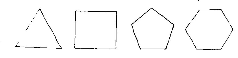 图4 正多边形Zhengduobianxing各边都相等,各内角也都相等的多边形。例如,图中的图形分别为正三角形、正四边形、正五边形和正六边形。