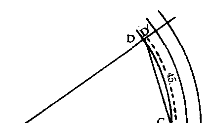 | 释义 | 正弦丈量法又称直弦丈量法,是径赛场地丈量方法之一。它是用已知的弧长求弦长,然后以弦量弧丈量第1道的栏位和接力区的位置,即找出各基准点位置的方法。例如,计算400米栏第1分道第1栏距离起点的弦长。O为半圆的圆心,OC为半径(36米),CD为内突沿。C′D′为400米栏从起跑线至第1栏的距离(45米),CD即C′D′的直弦。已知400米栏从起跑线至第1栏距离为45米(弧),所以,应先求出45米弧所对的角度。查表得知:第1分道的道米角为1.578390°, 1.57839°×45(米)=71°3′。代入以弧求弦的公式:弦=
