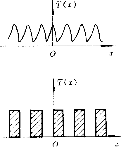 | 释义 | 正弦光栅zhengxuan guangshan在光栅平面上,透光率沿栅线垂直方向按正弦规律变化的光栅。可以看出它的形式与双光束干涉场的强度分布函数十分相似。实际制备一块正弦光栅,就是拍摄一张双光束干涉条纹的照像底片。为了保证透光率函数与曝光时的光强成简单比例关系,必须对底片进行线性冲洗,冲洗工艺要求较严格。对一维光栅而言,正弦光栅与普通刻痕光栅(或称黑白光栅)的区别如图,纵坐标表示透光率。理论证明,在用正弦光栅作夫琅和费衍射时,设平行光正入射,(即光沿光栅平面的法线入射),则衍射波只有零级和正、负一级最大,其它高级次的最大可完全消失,从而大大提高了衍射效率。