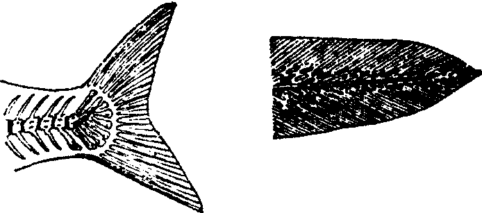 鱼尾类型的一种。尾鳍的上下两叶相等,外观对称,而内部不对称。脊椎末端向背侧弯曲,但仅达尾鳍基部,如高等硬骨鱼鲤、鲫等的尾即为正形尾。