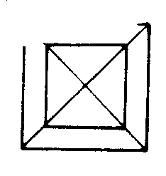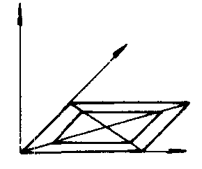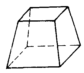 图4 画法 ❶画轴 画OX,OY,OZ轴; ❷画下底面及上底面在下底面内的射影 画两个位似的正方形,以它们的中心为位似中心,边长分别为1.5cm和1cm(图1),在平面XOY中画出它们的水平位置图形(图2); ❸画上底面 过图2中的小平行四边形的各顶点作OZ轴的平行线段,使它们的长等于1.3cm,画出上底面(图3); ❹成图 画侧棱,并加以整理,即可得到正四棱台的直观图(图4). |