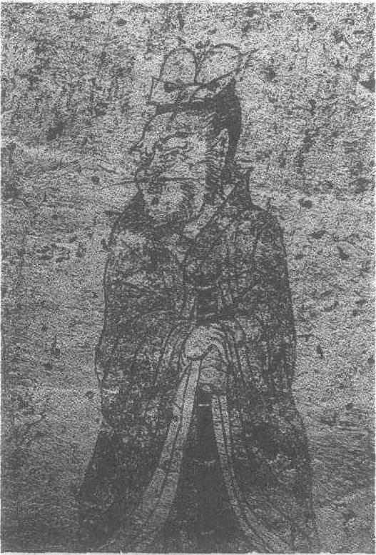 | 释义 | 武士像壁画北周天和四年(公元569年)。纵140厘米,横60厘米。宁夏回族自治区固原县深沟村李贤墓第三过洞右壁壁画。1983年发掘。墓道两壁共绘20名武士,此为其中一位。圆脸、三绺须、双目视前方。着袴褶,外系裆,右手持仪刀,巍然而立,作护卫状,形象十分威武。绘画时,以墨线勾勒人物线条,为增强立体感,服饰褶皱处还以红色晕染。