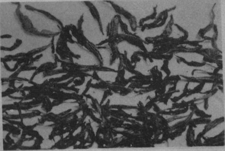 | 释义 | 武夷水仙Wuyi shuixian条形乌龙茶之一。产于福建省崇安县南武夷山周围。制法分萎凋、摇青、炒青、揉捻、毛火、足火等工序。萎凋用萎凋槽,每次摊叶厚度15~20厘米, 进口热风温度38℃,风量要大, 约1~1.5小时完成萎凋。中间翻拌1次, 翻动时动作要轻, 翻匀翻彻底。下机前鼓冷风10~15分钟, 下机后直接投入摇青机(或综合做青机)。摇青机每筒投叶10~12千克, 每隔0.5~1小时摇青一次, 每次2~6分钟, 摇后静置于筒内, 全程8~10次, 约6~8小时完成做青。下机后稍加堆放, 待花香出现即炒青。炒青用双锅杀青机 (或滚筒杀青机), 锅温280~300℃, 每锅投做青叶1.75~2千克, 杀青时间4~5分钟。先闷炒至蒸汽大量排出时, 透炒1分钟, 再闷炒至适度, 趁热投入揉捻机, 投叶量6~7千克,以重压、快揉, 至条索紧结, 约10~15分钟, 下机烘焙。机烘毛火温度120~150℃, 历时10~15分钟, 下机毛火叶含水率20~25%, 经一小时摊凉后足火。足火温度110℃, 历时15~17分钟即达足干。
