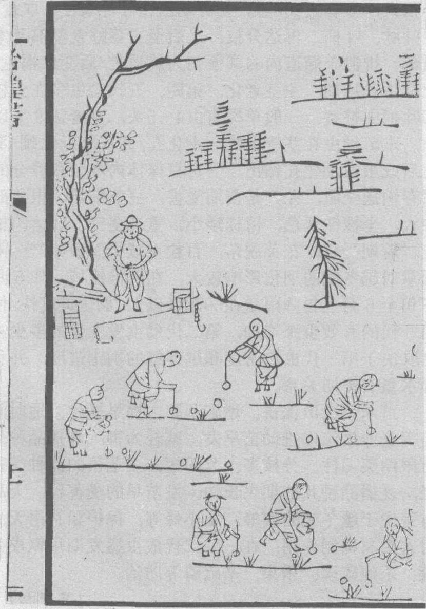 图4 治卵生蝻子图 中华人民共和国建立以后,采取的防治措施与对策,可分为3个阶段: 1949~1952年,主要依靠人工捕打,辅以药剂防治。每年投入大量劳力,开展治蝗群众运动。同时,在主要蝗区示范推广六六六撒粉和毒饵治蝗技术,1951年开始利用飞机治蝗(图5)。从1953年开始,进入了以药械防治为主人工捕打为辅的阶段,进一步建立健全了各级治蝗机构,在主要蝗区设立了专业治蝗站(或蝗虫测报防治站)和群众性的侦察治蝗组织,加强了蝗情侦查与预测预报,提高了防治技术与对策,要求把蝗蝻消灭在3龄以前,不使迁移、扩散为害。手摇及动力机械地面喷药和飞机撒药等治蝗技术,已为各地采用,局部地区开始蝗区改造;1959年以后,根据有关蝗虫综合治理技术与理论的研究和防治的实践经验,又制定出“改治并举”的治蝗方针,使治蝗工作进入根除蝗害阶段。经过长期努力,很多蝗区得到改造,生态条件不再适合蝗虫猖獗发生,长期控制了危害。由于部分沿河、沿湖和沿海蝗区仍未彻底改造和有的水库干涸等情况的存在,也有可能出现蝗虫的大发生,甚至形成新的蝗区。在这类地区,监测蝗虫发生动态与防治工作,仍需继续进行。