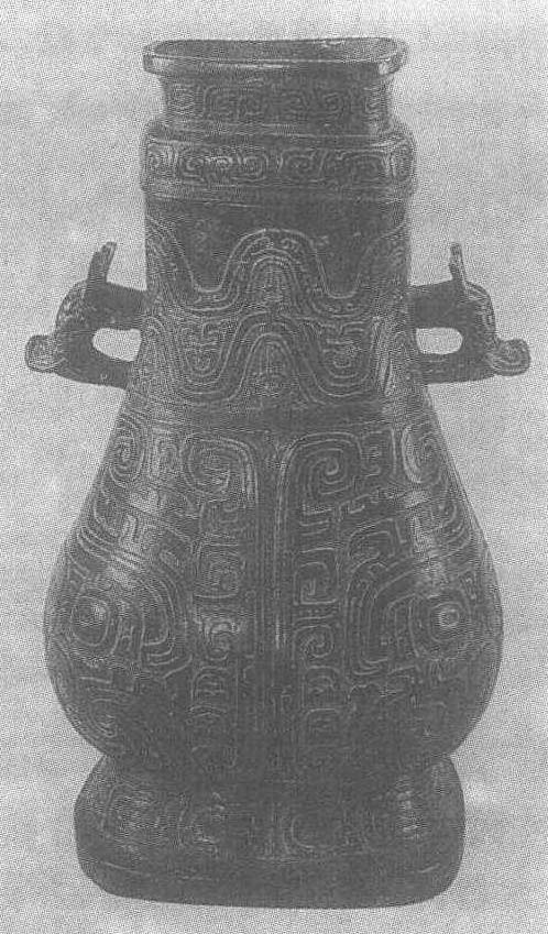 西周。通高58.5厘米,口径长14.7厘米,宽19.9厘米。台北故宫博物院藏。直口,长颈,双兽耳,垂腹,圈足,覆盘形盖。器表遍饰变体夔龙、波浪、饕餮和重环等纹饰,流畅生动。在壶盖的内边沿,刻铭文21字。