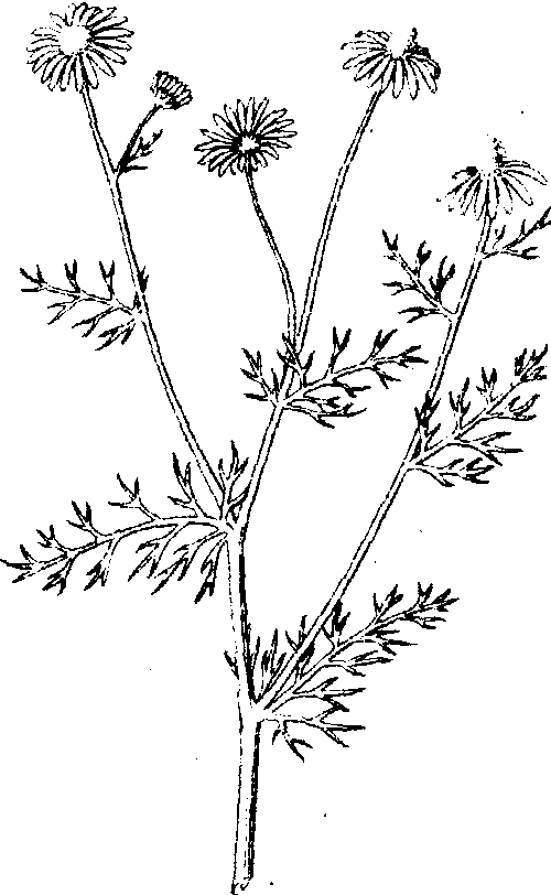母菊别名洋甘菊。一年生草本,高约30厘米,全株无毛。茎有粗细不等棱槽,上部分枝。头状花序异型,在茎枝顶端排列成伞房状,舌状花白色,筒状花黄色。瘦果小,淡绿色。花果期5—10月。头状花序可入药。有发汗和镇痉作用,全草含有大量的维生素A和C。庭园栽培,供观赏。 |