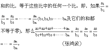比例除基本性质外,还有以下一些性质, 通常称为比例定理。❶反比定理: 比例的两个比的前后项可以同时互❷更比定理:比例的两个内项(或外项)可以互换。❸合比定理:在一个比例里,第一个比的两项之和与其后项的比, 等于第二个比的两项之和与其后项的❹分比定理:在一个比例里,第一个比的两项之差与其后项的比,等于第二个比的两项之差与其后项的❺合分比定理:在 一个比例里,第一个比的两项之和与两项之差的比, 等于第二个比的两项之和与两项❻等比定理: 几个相等的比的前项之和与后项之