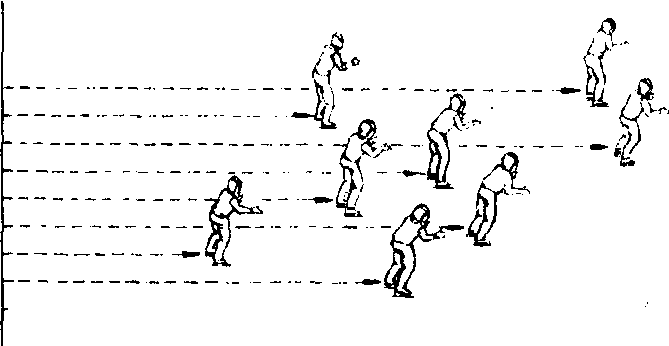 游戏方法 将学生分成2—6组。预备时,第一组站在起滑线后,左右间隔2米。教师发出开始口令后,迅速蹬冰前跑。至滑行线停止蹬冰,开始滑行。滑行时两脚平行滑进, 滑行停止原地不动, 由老师评判谁滑的最远。最后以滑进路线最长为胜。按上述方法, 各组依次进行。还可把各组滑行最远的前1-3名抽出来再比,决出最后冠军。 游戏规则 ❶滑行时,必须跑直线,不能影响左右同学。 ❷蹬冰至滑行线应停止蹬冰, 否则判犯规。 |