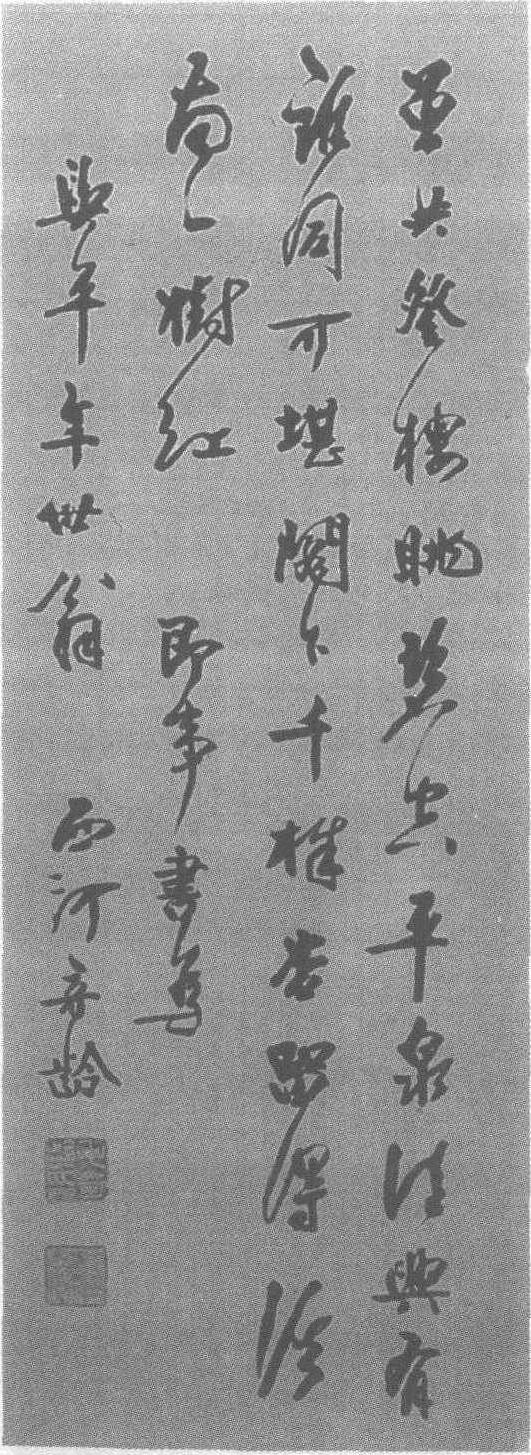 | 释义 | 毛奇龄行书即事书清。纸本。纵115厘米,横40厘米。辽宁省博物馆藏。毛奇龄(明天启三年一清康熙五十五年,即公元1623—1716年,字大可),又字僧开、僧弥、斋于,号秋晴,又号初晴、晚晴、河右僧,学者称“西河先生”,又名甡,浙江萧山人。明季诸生,明亡,隐身山谷,读书土室中。清康熙十八年召试鸿博,授翰林院检讨,充史馆纂修《明史》。博览群书,著述甚富。善书,工诗词古文,亦工绘画,但不多作。著有《西河集》。《清史稿》卷四百八十一有传。此毛奇龄即事诗云:“曾共登楼眺碧空,平泉清兴有谁同,可堪阁下千株杏,留得溪南一树红。”下款署:“即事书与平年世翁,西河奇龄。”行书点画雄强峻秀,雍容舒长,字体方圆姿肆,骨力朴茂,章法错落有致,颇为生动而有情致。