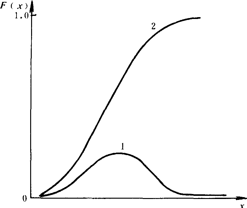 统计曲线图 气候要素频率分布曲线和保证率曲线图是另一种性质的线条图, 反映单一要素内部的统计特性(图3)。频率分布曲线常在绘制频率直方图的基础上制作(图3中曲线1), 而保证率曲线(或累积频率曲线) 则是在频率曲线基础上累加的结果 (图3中曲线2)。