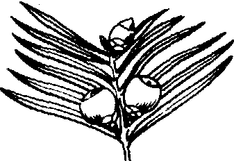 东北红豆杉树形端直,枝叶浓密,色泽苍翠,秋日红色假种皮在绿叶丛中辉映。宜在较阴的环境中孤植、丛植;矮紫杉姿态古拙,宜于高山园、岩石园栽植,也可植为绿篱。枝、叶、树皮中含紫杉醇,具抗癌作用。 同属中常见的观赏树种尚有:红豆杉(T.chinen-sis),别名观音杉。叶条形,略微弯曲,呈二列排列,种子微有2棱脊,卵圆形。花期4月,10月种子成熟。分布于中国甘肃南部、陕西、湖北及四川等地海拔1500~2000m的山地。为中国的特有树种。南方红豆杉(T.mairei),别名美丽红豆杉,叶常较宽较长,多呈弯镰形;种子较大,微扁,多呈倒卵状。花期3~4月,种子10~11月成熟。产中国长江流域各地,多生于海拔1200m以下山地林中。浆果红豆杉(T.baccata),别名欧洲紫杉。常绿乔木,高15~28cm,树冠圆锥形,老年期成圆顶。分枝水平状。叶条形,深绿色,有光泽。假种皮红色。产欧洲及北非。在栽培上,按树冠姿态和针叶颜色划分有100多个品种。主要有:‘金针’欧洲紫杉(cv.Adpressa Aurea),叶短而宽,金色;‘密球’欧洲紫杉(cv.Compacta),矮生灌木,球状,高1.3m;‘矮’欧洲紫杉(cv.Nana),矮生灌木,高60cm;‘灰叶’欧洲紫杉(cv.Glauca),叶灰白。加拿大红豆杉(T.canadensis),常绿灌木,高1~2m,冠幅4m。枝平展,叶条形、密生,果实密集,假种皮红色。产美国东北部。 东北红豆杉Northeast yewTaxus cuspidata Sieb.et Zucc.,又称紫杉、赤柏松、米树。红豆杉科,红豆杉属。常绿乔木,高达20 m,胸径40 cm;树皮红褐色,有浅裂纹。叶不规则二列,V形斜展,条形,长1~2.5 cm,宽2~3 mm,下面有两条灰绿色气孔带。种子当年成熟,卵圆形,长约6 mm,种脐三角形或四方形。分布于黑龙江、吉林,海拔500~1 000 m山地;俄罗斯、日本及朝鲜半岛也有分布。耐阴,耐寒。原始林内天然更新良好,生长很慢。木材坚硬致密,有弹性,有光泽和香气,供建筑、美工和细木工等用材。心材可提取红色染料。枝、叶和树干可提取紫杉素,可治糖尿病。 东北红豆杉红豆杉科乔木。又称紫杉。小枝不规则互生。叶线形,直或微弯,长1~2.5 cm,宽2.5~3 mm,基部微斜生或近对称,先端凸尖。下面有2条灰绿色气孔带。雌雄异株,雄球花单生叶腋,有短梗。雌球花受精后珠托发育成红色肉质、杯状的假种皮,卵圆形,长约6 mm,顶端有小钝尖头。产黑龙江、吉林、辽宁海拔500~1000 m的疏林中。材质优良。树皮、枝叶、种子含紫杉醇,为新型抗癌药物。 |