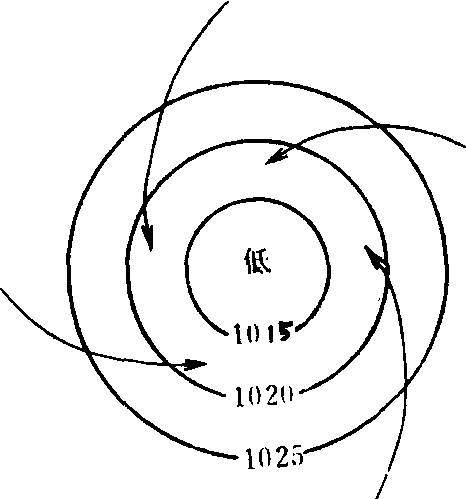 | 释义 | 气旋qixuan中心气压比四周低的水平空气涡旋。在北半球气旋中空气绕中心作逆时针旋转;南半球气旋中空气绕中心作顺时针旋转。气旋的形状近似于圆形或椭圆形。其大小以地面图上最外一条闭合等压线的范围来量度,水平尺度一般有1000公里,大者可达2000~3000公里,小者只有200~300公里。地面气旋中心的气压值多在1010~970百帕之间,发展强大者可低于935百帕,海洋上曾有的低到920百帕。气旋按活动地区分为温带气旋、副热带气旋和热带气旋。这里只介绍温带气旋。