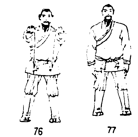 四十九式经络动功第1段“通经”动作之十:❶随着吸气,提肛调裆,两腿徐缓伸直,两掌五指展开前摆浮起。(图76)❷随着呼气,松腹松肛,两掌下按,将气引到丹田;眼平视前方。(图77)练功次数:一吸一呼为1次,共做1次。要点:周身放松,百会上顶,气沉丹田。经络动功第2段“循行”动作之十二和第3段“导气”动作之十九都是重复此动作。
