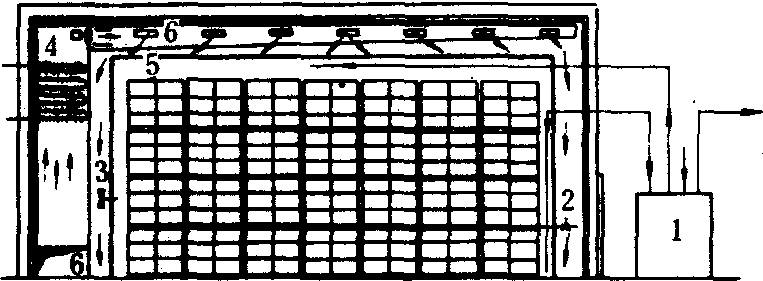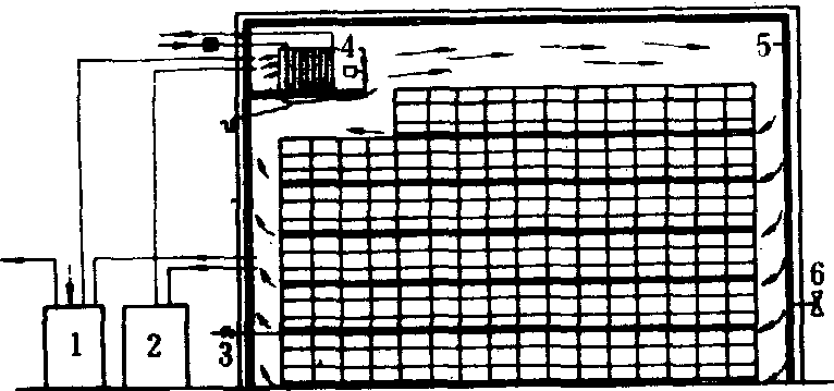 确定每吨果品所需硅窗面积, 主要影响因素是呼吸强度、品种特性和贮藏温度。因此, 必须有适宜的贮藏低温。如苹果为0~4℃。但在入贮初期, 在一定的范围内提高贮藏温度, 可以尽快提高帐内二氧化碳的浓度, 降低氧的浓度, 并稳定一段时间, 可获得更良好的保鲜效果。 现代气调库利用气调设备人工调整气体组成。库内湿度保持在90~95%,气调库都有很好的气密性,又能使库内气体循环流通, 及时去除库内贮藏果实产生的挥发性有害气体。 ![]() 图 5 “英国体系”的内冷式气调库 气调库的土木建筑和冷库相同(见冷藏)。按其冷却方式可以分为: 内冷式(图5),将冷却系统(蒸发器)放置于气调库的内部,一般设置在库房一端的上方。这种冷却方式库内温度均匀,效果最好。外冷式(图6)即夹套式气调库, 将密封的气调库, 库壁用导热性能好的金属制作, 放在原有的冷藏库内, 利用冷却器吹出的冷风通过整个密封库壁的外表面使库内降温, 但降温效果差。 ![]() 图 6 “荷兰体系”的外冷式气调库 气调库的单间容量一般不超过300吨。 现代气调库, 一般都采用两层镀锌钢板, 中间夹有10~15厘米的聚苯乙烯或聚氨脂泡沫塑料, 先作成预制件,然后组装墙体和屋顶。这种结构将隔热层、隔汽层和隔气层三位一体, 施工简单, 同时还可以防止因热胀冷缩而造成的气密性破坏。 气调库内的气体调节有两类: 一是充气式, 利用氮气发生器, 中国常用的有煤油燃烧制氮机, 丙烷燃烧制氮机,催化燃烧制氮机, 以及焦碳分子筛制氮机,其中的焦碳分子筛制氮机为最好。将产生的以氮为主仅含有少量氧和二氧化碳的混合气体, 直接地持续充入气调库内, 并辅之以其他调节措施; 另一种是循环式, 把气调库内空气引入一种燃烧装置, 使空气中的氧变成二氧化碳, 当二氧化碳超过了预定指标时, 开启二氧化碳洗涤器, 藉此使氧与二氧化碳达到预定指标。补充二氧化碳可用压缩气, 也可以用干冰; 脱除二氧化碳, 一般采用活性碳脱除器。此外, 还应有乙烯的去除设备,乙烯在贮藏环境中浓度≥1ppm时就能刺激果实的成熟, 在气调贮藏中,应及时将乙烯去除,或使其减少到尽量低的浓度。去除乙烯最简单的方法是在库内放置一定数量的高锰酸钾或活性炭。也可将饱和的高锰酸钾溶液, 浸泡某些活性载体,如氧化铝、活性炭或沸石等, 制成颗粒吸附剂, 也可以将贮藏环境的气体引入某种循环系统, 用铂金作催化剂, 将乙烯氧化燃烧而去除。为了保持库内压力平衡, 可用水封或用伸缩性较大的囊。气调库检测气体成分的设备(见贮藏检测仪器)。 目前气调贮藏发展极为迅速,应用范围不断扩大;除果品外, 其他食品也都在应用气调贮藏。气调贮藏技术也在不断丰富和发展。但气调贮藏苹果、梨、香蕉时, 由于阻缓呼吸成熟的进程, 使果实在成熟过程中一系列转化过程受到抑制, 因此, 一般在出库初期味淡而少芳香, 长时间的低氧和高二氧化碳环境, 还容易产生生理病害, 如缺氧症, 二氧化碳伤害, 酒精中毒等。为了继续提高气调贮藏的保鲜效果, 近年来又出现了: ❶减压贮藏。贮藏环境气压低至76mm汞柱。目前, 仅在某些运输中应用。 ❷快速气调。要求2~3天将气调库装满, 以提高保鲜效果。 ❸低氧贮藏或称超低氧贮藏。把氧降至1%以下,能完全防治虎皮病。但有使果实受伤害的危险。 ❹入贮初期高二氧化碳处理。入贮初期用20%二氧化碳和2~3%的氧处理2个星期,可使金帅苹果的软化速度显著下降。 ❺低乙烯贮藏。将跃变前期的苹果在采后立即降温, 快速进入气调水平(氧2~3%, 二氧化碳3~5%), 用高锰酸钾吸收乙烯, 使其始终低于1ppm,此法贮藏旭和元帅等苹果7~9个月, 硬度下降不到10%, 而且可以防治虎皮病, 出库后果实的货架期也较长。但目前成本较高。 ❻变动气调贮藏。简称DCA。不同的贮藏时期维持不同的氧气和二氧化碳的比例。 气调贮藏controlled atmosphere stora-ge在适宜的低温条件下,减少贮藏环境空气中的氧气并增加二氧化碳的贮藏方法。控制和协调这两种气体成分,并结合冷藏,可以更有效地抑制蔬菜、水果的呼吸、后熟衰老和病原微生物的活动,延长产品的贮藏期和货架期。气调贮藏是最佳的商业性贮运措施,许多果菜、叶菜、花菜和茎菜都可应用。按规定指标人为调节控制氧和二氧化碳含量的气调贮藏用CA表示。产品贮于基本密闭的容器内,由其自身呼吸而改变空气组成,基本不进行人工调节的气调贮藏称自发气调或限气贮藏,用MA表示。