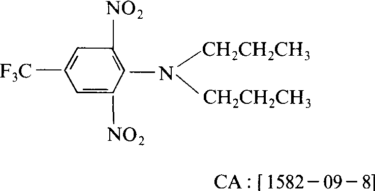 | 释义 | 氟乐灵trifluralin选择性芽前二硝基苯胺类除草剂。商品名特福力(Treflan 4EC)、氟特力(Flu-trix 48EC)、茄科宁等。化学结构式: