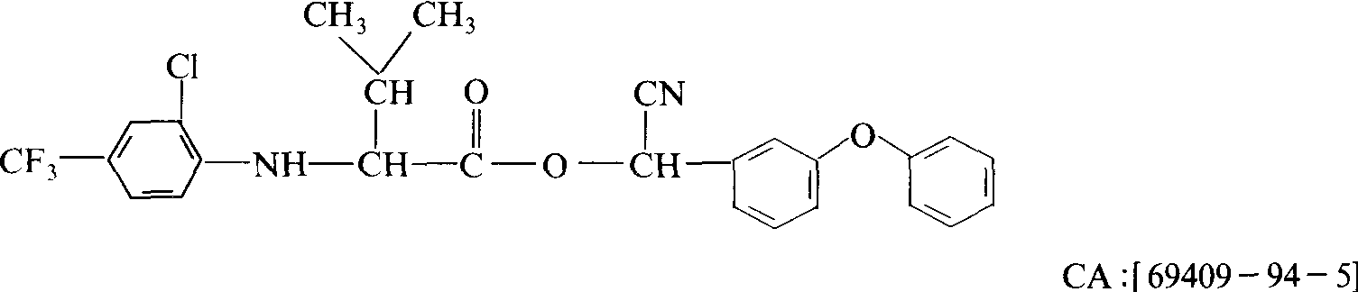 | 释义 | 氟胺氰戊菊酯fluvaiinate非三元环结构含氟并具有一定杀螨活性的合成拟除虫菊酯杀虫剂。又名氟胺氰菊酯。商品名马扑立克、Mavrik、Spur等。有四个光学异构体,现在的产品是(R)酸(R,S)醇酯。化学结构式: