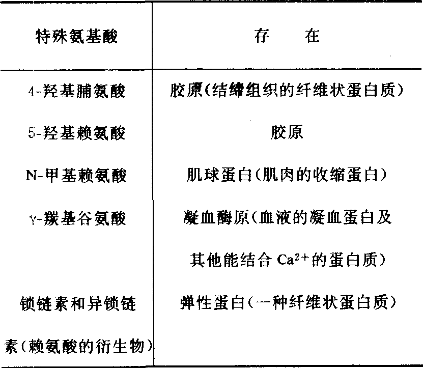 α-氨基酸除作为营养品和药物外,还是重要的化工原料。谷氨酸-钠盐俗称味精,是常用的调味剂。 氨基酸anjisuan含有氨基的羧酸都是氨基酸,但在生物体中存在的氨基酸种类不多。组成天然蛋白质基本结构的氨基酸共有20种。这些氨基酸都是α-碳氨基酸,即氨基和羧基都连在同一个α-碳原子上。α-碳原子还连接1个氢原子和1个侧链基团。侧链基团通常用R表示。20种氨基酸的R基都不相同。氨基酸在生理pH(约为7)时为离子式,其通式是:从式中可看出,除R=H(甘氨酸)外,氨基酸的α-碳原子是手征性(不对称)碳原子,是分子的不对称中心,它连接着4个不同的原子或基团。因此,除甘氨酸外,所有α-氨基酸均为旋光活性物质。一般用构型表示手征性碳原子周围4个原子或原子团在空间排布的立体关系,而将手征性化合物分成D-型和L-型两种异构体。规定以甘油醛为参考化合物,将甘油醛的醛基写在分子的顶端,则手征性碳原子周围的原子或原子团有两种排布方式:羟基在碳原子右边的叫D-甘油醛,在左边的叫L-甘油醛。参照甘油醛的构型,将α-氨基酸的羧基写在分子的顶端,则氨基在手征性碳原子右边的是D-氨基酸,在左边的是L-氨基酸。氨基酸的构型与其旋光性质没有一定的关系,有的L-氨基酸使偏振光平面向左旋转,为左旋体;另外一些L-氨基酸能使偏振光平面向右旋转,为右旋体。天然蛋白质中的氨基酸单位都是L-氨基酸,生物中虽也存在某些D-氨基酸,但它们不是蛋白质的成分。构成蛋白质的20种基本氨基酸有不同的R基,因此可以根据R基的性质,特别是其极性分类。氨基酸的R基的极性变化很大,这里所谓的极性实际指的是在生理pH时与水(典型的极性分子)作用的趋势。R基可从非极性或疏水R基变化到高极性亲水R基。据此,可将氨基酸分为4大类。每种氨基酸有一国际通用的3字母或1字母符号,现将这20种氨基酸的名称、结构式(另表示R基)及缩写符号列成一表(见下页)。α-氨基酸为无色晶体,熔点较高。一般能溶于水、稀酸或稀碱,但不溶于有机溶剂。氨基酸的α-氨基、α-羧基和其侧链的功能基都有特征性化学反应,如氨基可以乙酰化,羧基可以酯化等。有一个在检出、测量和鉴定氨基酸中得到广泛应用的方法,是利用它们与茚三酮的反应,所有具有自由α-氨基的氨基酸与过量茚三酮共热时,产生紫色化合物,而α-氨基被取代的脯氨酸则产生黄色。在合适的条件下,颜色的深度反映氨基酸的浓度,可以定量测定。氨基酸的主要功能是合成蛋白质,因此生物体中的氨基酸不但数量要足,品种要齐全,而且比例要适当。人和动物体内的氨基酸,可来自食物蛋白质在消化道内消化(酶水解)后被吸收的氨基酸,也可来自组织蛋白质的分解。植物与微生物的营养类型与动物不同,但其细胞内的蛋白质在代谢时仍然需要先行水解。某些氨基酸在人和动物体内可以相互转化或由其他物质转变而来,但人和动物不能合成全部氨基酸。不能生物合成的那些氨基酸叫做必需氨基酸。人有8种必需氨基酸,它们是:赖氨酸、色氨酸、苯丙氨酸、甲硫氨酸、苏氨酸、亮氨酸、异亮氨酸及缬氨酸。这类氨基酸必须由食物,主要是蛋白质供给。动物蛋白质的营养价值一般比植物蛋白质高些,这是因为前者所含的必需氨基酸的组成和比例,都比较合乎人体的需要。食品种类多样化,可以互相补充,提高蛋白质的营养价值。如谷类蛋白质含赖氨酸较少,而色氨酸含量相对多些,豆类蛋白质含赖氨酸较多,而色氨酸较少,把这两种蛋白质混合食用,恰好补充了彼此的不足。 现将几种特殊氨基酸及其存在列表说明如下: