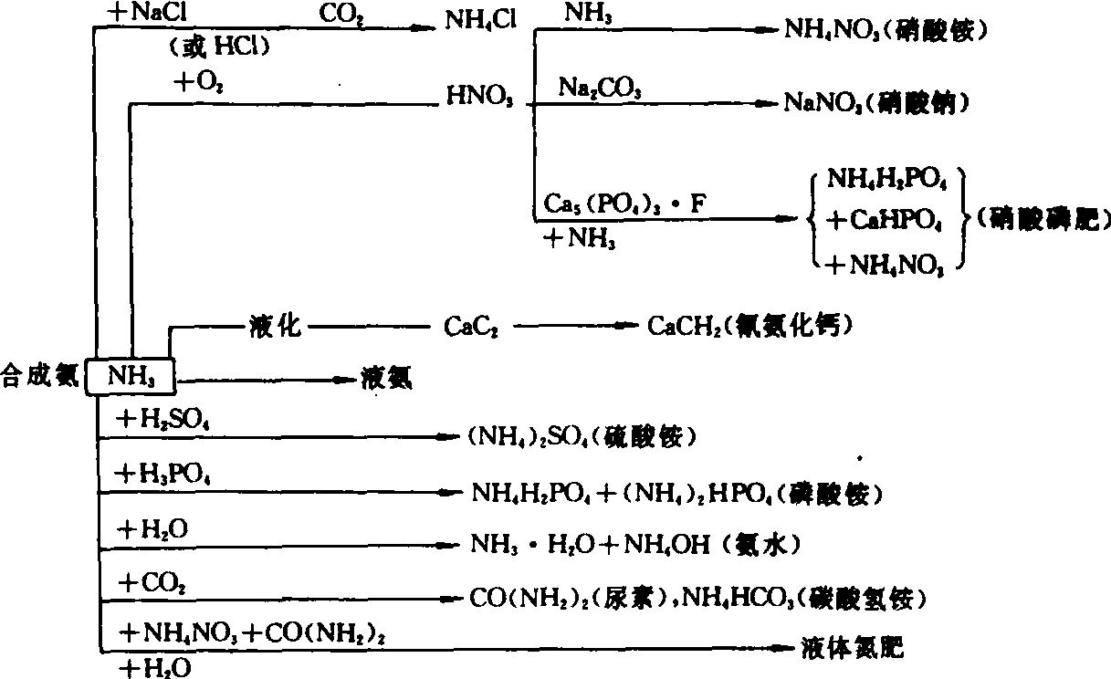 图2 氮肥在土壤中的转化过程示意 施用技术 铵(氨)态及尿素氮肥宜深施。易挥发出氨(NH3),并伤害作物种子和茎叶的铵态氮肥,一般只作基肥施用。碳酸铵虽可作追肥,但切忌接触作物茎叶。在常温下比较稳定的其它铵态氮肥、尿素以及缓释氮肥等可作基肥、追肥。但其中氮素含量高和有害成分含量达到致毒浓度者,一般不宜作种肥。 氮肥与磷、钾等化肥合理配施,增产效益显著;氮肥与有机肥配施,除了协调养分平衡以外,还可通过有机肥料中的微生物将部分速效氮暂时转化为缓效性氮,起到减少氮素损失、延长肥效的作用;氮肥与硝化抑制剂和脲酶抑制剂配施也是提高氮肥施用效益的途径之一。硝化抑制剂可抑制土壤中亚硝化毛杆菌的活力,从而减缓NH4+转化为NO2-的进程,俗称氮肥增效剂。应用硝化抑制剂具有减少氮素损失;提高氮肥利用率,降低蔬菜和牧草等农产品中NO3-和NO2-的含量、改善品质,保护生态环境和人畜健康等方面的作用。硝化抑制剂的种类繁多,但研究和应用较多的仅有2-氯-6-(三氯甲基)吡啶(CP)、2-氨基-4氯-6-甲基嘧啶(AM)等几种,其中以CP最为成熟。选用的硝化抑制剂必须具备的基本条件是:❶只对土壤中的亚硝化细菌有抑制作用,而对有益微生物无害; ❷能与氮肥均匀混合,混后不影响肥料的理化性质和肥效,施用方便; ❸能随土壤溶液移动,不易分解和流失,有相当的持久性; ❹用量少、效率高、价廉、残留量低,对动植物产品品质和环境等均无不良影响。硝化抑制剂可作基肥和追肥施用,施前先与适量细土混匀,再和氮肥拌施。硝化抑制剂的效果尚不稳定,且因作物和土壤种类、氮肥用量、气候等不同而异。脲酶抑制剂参见尿素。此外,在一些发达国家,还较普遍地采用氮肥与除草剂或某些农药混施,收到了施肥、防治病虫害和除草结合,肥效和药效都得到提高的效果。 不同作物对氮的需要量不同,其氮肥施用量,要根据土壤供氮能力、作物产量、氮肥种类及施用时期和方法等来确定。 发展趋势 当今,为了减少运输、贮存和使用等方面的能源消耗和成本,全球氮肥总的发展趋势是:❶继续发展尿素等高成分固体氮肥; ❷加速向复合化方向发展; ❸增加氨、液氨等高浓度氮肥的比例; ❹发展缓释性氮肥和使用氮肥增效剂; ❺以粒状氮肥代替粉状氮肥。中国今后重点发展的是尿素、液氨、硝酸铵及其它高浓度的含氮的复合肥料。同时,注意解决氮肥在贮运和施用过程中养分损失较多,氮素利用率不高等方面的问题。 氮肥含氮的单元肥料。以供应作物氮素为主。多为水溶性,肥效迅速。 氮肥以氮为主要养分的肥料。按氮的化合形态可分为:1.铵态氮肥,如氯化铵;2.硝态氮肥,如硝酸钙;3.酰胺态氮肥,如尿素;4.氰氨态氮肥,如氰氨化钙;5.有机质氮肥,如腐熟粪尿、饼肥、毛屑等。后三类须经分解转化为铵态或硝酸态后才能产生肥效。适量使用氮肥,能促进作物茎叶繁茂、分蘖增多、籽实饱满,提高作物的产量和蛋白质含量。 氮肥以氮素为主的肥料。分为铵态氮肥、硝态氮肥、酰胺态氮肥3大类。铵态氮肥主要包括碳酸氢铵(NH4HCO3)、硫酸铵[(NH4)2SO4]、氯化铵(NH4Cl)、氨水(NH3·nH2O)、液氨(NH3),含N量分别为17%、20%~21%、24%~25%、12%~17%、82%。碳酸氢氨作基肥和追肥,每公顷施肥量不超过75 kg。硫酸铵作种肥每公顷施肥量37.5 kg~75 kg。硝态氮肥包括硝酸铵、硝酸钙等,前者含N33%~34%,20℃时溶解度为188,作追肥应施入地下约10 cm;后者含N15%~16%,含Na26%,宜作追肥。酸胺态氮肥主要是尿素[CO(NH2)2]含N45%~46%,20℃时溶解度为105,缩二脲含量超过0.5%时,不宜作根外追肥,作种肥时,用量每公顷不超过37.5 kg。 |