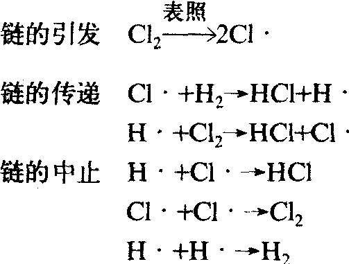 | 释义 | 氯气与氢气见光爆炸实验luqi yu qingqi jianguangbaozha shiyan该反应为典型的链锁反应,因反应迅速,能引起爆炸。反应机理如下: