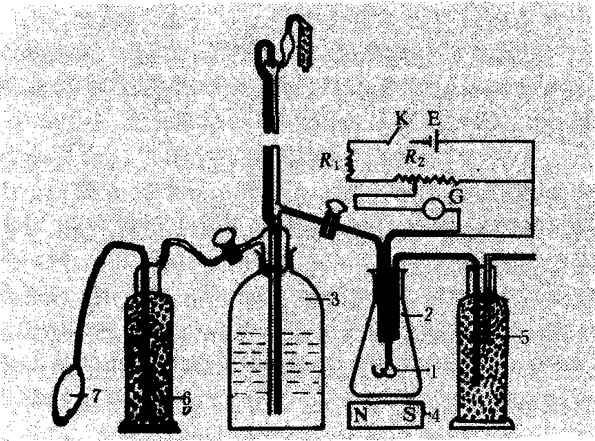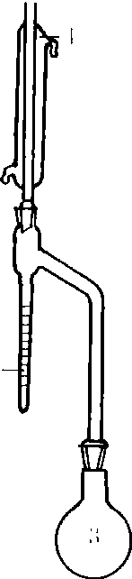基本原理是利用I2氧化SO2时需要定量的H2O参加反应: I2+SO2+2H2O⇌2HI+H2SO4 为使反应不可逆进行,需加入吡啶以中和反应后生成的酸。为使生成物稳定不与水发生副反应,尚需有醇(甲醇)存在。故滴定时的标准溶液是含有I2、SO2、C5H5N及甲醇的混合溶液,——费雪试剂。一摩尔质量碘与一摩尔质量水定量作用: H2O+I2+SO2+3C5H5N+CH3OH→ 2C5H5N·HI+C5H5NHSO4CH3 卡尔·费雪法终点的确定可采用目测终点法或永停电位终点法,以永停电位终点法为标准方法。 共沸法是用不溶于水的有机溶剂(如甲苯)与样品一起加热回流,在回流过程中,样品中水分变为蒸汽被带出,由其冷凝水容积可算出水分含量(图2)。