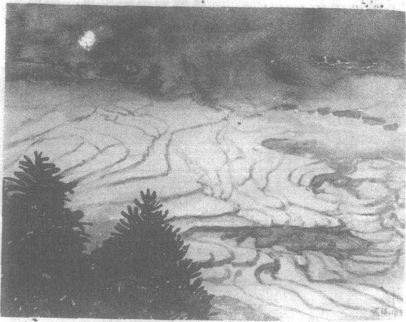 | 释义 | 水分的运用Shuifen de yunyong水彩画的技巧之一。水彩画是借助于水的溶解、渗化和扩散来描写形象的。因此,运用水分的多少关系到色彩的浓淡、虚实、衔接、润湿、烘托等,使画面产生丰富多采的表现意趣。水分的掌握离不开颜料的成分、纸的湿度和时间的控制等因素,只有将这些关系互相配合好,才能达到水彩画理想的效果:❶颜料与水分。主要使颜料达到溶化的作用。一般来说,水分多颜料便冲淡、明亮。水分少则颜料就浓重、深沉。即使是用同类颜料,用水多少其色彩效果也不相同。因此不能绝对说出水分用的比例,而应从不同的表现需要出发。在画面上的水分过多,往往不易控制,甚至造成水分到处流散,使色彩混浊一片,难以准确表现形体。如果水分过少,颜料得不到溶解,使画面枯燥乏味,水彩画的透明感不易体现。