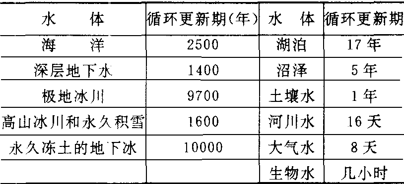 *据《联合国水会议文件》1977年。 表2 各种水体的循环更新期*