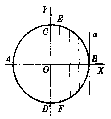 图1 水平放置的圆的直观图一般用正等测画法.它的规则是:❶在已知的⊙O中取互相垂直的轴OX,OY.画直观图时,把它们画成对应的轴O′X′,O′Y′,使∠X′O′Y′=120°.它们确定的平面表示水平面. ❷已知图形上平行于X轴或Y轴的线段,在直观图中,分别画成平行于X′轴或Y′轴的线段. ❸平行于X轴或Y轴的线段,长度都不变. 按照上述规则,可画出圆的直观图.画法如下:❶如图2,在⊙O上取一对互相垂直的直径AB,CD,分别以它们所在的直线作为X轴、Y轴,画对应的X′轴、Y′轴,使∠X′O′Y′=120°. ❷将⊙O的直径AB分成n等分,过分点作平行于Y轴的弦CD,EF,…,在X′轴上以O′为中点作线段A′B′,使A′B′=AB.将A′B′分成n等分,以分点为中点作Y′轴的平行线段C′D′,E′F′,…,使C′D′=CD,E′F′=EF,…. ❸用平滑曲线顺次连结A′,D′,F′,B′,E′,C′,…,A′,就得到圆的直观图,它是一个椭圆.