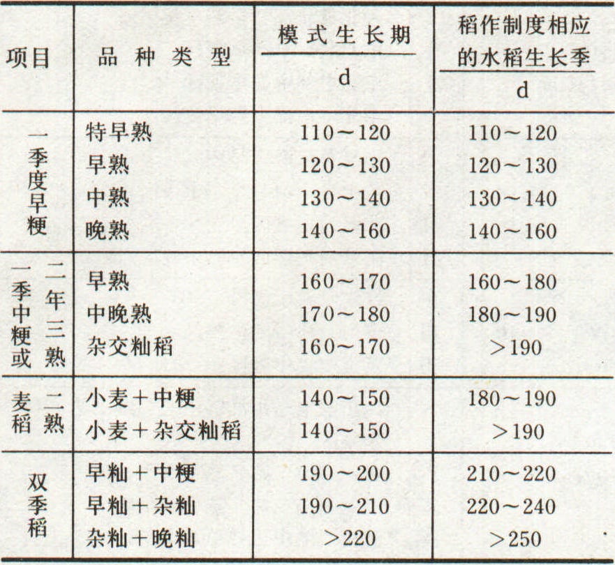 | 释义 | 水稻气候区划shuidao qihou quhuaclimatic divisions for rice根据水稻的农业气候指标编制的农业气候区划。它对水稻品种的合理布局, 正确推广良种、改革稻作制度、改进栽培技术等均可提供农业气候依据。中国和日本都编制了稻作气候区划。日本内善兵卫作出了日本水稻气候区划(见日本农业气候区划)。高亮之等作出了中国水稻气候区划。 +b4△φ+b5△D△φ 水稻生长季指标和模式生长期指标如表1:表1 全国水稻各品种类型生长季 (续表) 中国水稻气候区划图 表2 中国水稻气候区划表 |