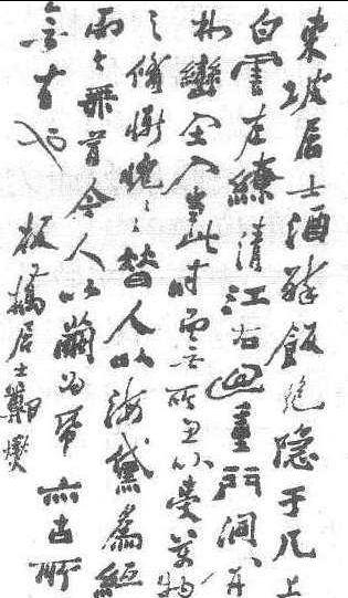 清代郑燮书,纵139.4,宽74.1厘米,纸本,行书。凡6行,共68字。写苏轼语录。识此行书,以篆草隶楷四体相熔,参入兰竹笔意。结构夸张、章法斜飞相得,气势飘逸古朴,不落窠臼。钤白文“板桥郑燮”朱文“丙辰维士”印二方。现藏旅顺博物馆。