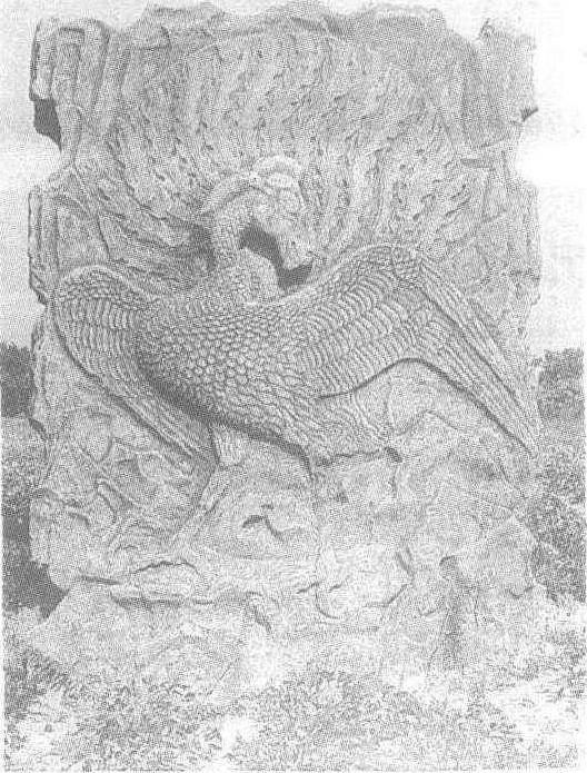| 释义 | 永泰陵石瑞禽北宋元符三年(公元1100年)。高227厘米,宽165厘米。河南省巩县回郭镇宋哲宗赵煦永泰陵神道的石像生。浮雕在高约4米,宽约2米的石壁上。瑞禽劲爪攫岩,振翼雄峙,回首俯视下界,似欲展翅高飞,形象颇为生动。浮雕瑞禽是宋陵首先使用的一种石像生。其为一种具有象征性的神鸟,状为马头、龙颈、鹏翅、凤尾。含有“鹏图”、“祥瑞”之意,借以寓示前程远大。