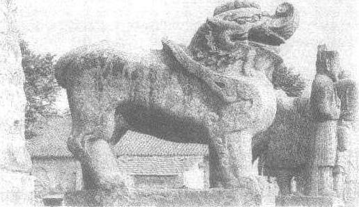 | 释义 | 永熙陵石甪端北宋至道三年(公元997年)。通座高280厘米。河南省巩县西村宋太宗赵光义永熙陵神道石像生。独角,长唇向上翻卷如云,昂首鼓胸,双翼夹肋,长尾上卷贴臀部,后肢微屈,伫立台座上,张嘴作吼啸状。其体积厚重,造型高大,雄壮威武,颇有气魄。“甪端”是宋代皇陵石像生的一个新品种。据《宋书·符瑞下》称:“甪端者,日行万八千里,又晓四夷之语,明君圣主在位,明达方外幽远之事,则奉书而至。”宋陵用甪端代替以往皇陵的麒麟、天禄、辟邪等,是取其“嘉瑞”之意。