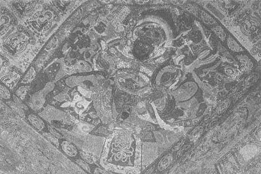 | 释义 | 东方天王像壁画五代。纵320厘米,横347厘米。甘肃省敦煌县莫高窟第98窟窟顶东南角壁画。此画有题榜“谨请东方提头赖吒天王主领一切乾闼婆神毗舍阇鬼并诸眷属来降此窟。”东方天王提头赖吒又称持国天王,与南、西、北三天王共同镇鬼保民。从五代开始,莫高窟凡建大型石窟,在主室窟顶四隅,皆凿天王浅龛。图中天王戴金冠,着金甲、朱袍,蹬战靴,游戏坐于床座上。天王赤面黑须,怒目圆睁,形象威严不可侵犯。两旁的神将,赤面绿眼,手持长矛,或肃立,或呵叱,烘托了天王的威武神功。此图赋色浓厚,人物轮廓采用焦墨线勾勒,十分流畅清晰。