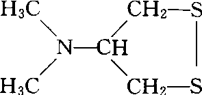 | 释义 | 沙蚕毒素nereistoxin异足索蚕(沙蚕)体内的一种毒素。化学名称: 4-N,N-二甲氨-1,2-二噻戊烷。化学结构式如下。这种沙蚕被误食后,常感头痛、呕吐、呼吸短促。家蝇在沙蚕体上爬过,即可致中毒。经研究确定沙蚕毒素的化学结构、并衍生出沙蚕毒素类杀虫剂,如杀螟丹、杀虫双、易卫杀及杀虫磺等。这类杀虫剂对昆虫有很强的胃毒和触杀作用,而对高等动物较安全。在昆虫体内代谢形成沙蚕毒素侵入到昆虫神经组织突触部位,有可能取代乙酰胆碱,与乙酰胆碱受体(AchR)结合,切断突触部位的正常神经兴奋传导。昆虫接触沙蚕毒素杀虫剂后,动作显著变慢、停止发育、虫体软化、瘫痪而死亡。