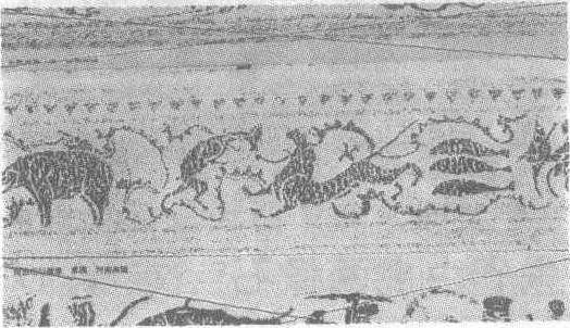 | 释义 | 河伯出行画像石东汉。长40厘米,宽140厘米。河南省南阳县出土。河南省南阳汉画馆藏。浅浮雕减地法刻成。画面在缭绕的云气间,自右向左分刻一头伫立的象,一只人立长啸的熊,一只狂奔的虎及一辆由三条鱼曳引的云车,车上坐着神圣的河伯。构图简练,物象生动。河伯,亦作“冰夷”“冯夷”等,是古代神话中的黄河之神,为天帝的臣属。传说他渡河淹死,被天帝封为水神化为白龙,又被后羿射瞎左眼。他还曾授给夏禹治水图。《庄子》、《九歌》、《天问》有关不少他的故事。自殷商至汉代他一直被人们奉祀着,其形象随着地区、时代的不同而有所变化。