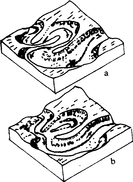 图3 深切河曲及离堆山形成示意图 a. 深切曲流阶段; b. 形成离堆山阶段