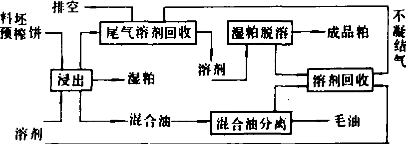 | 释义 | 油料浸出设备solvent extraction equipment for oil-bearing materials用于将经过预处理和轧坯后的油料,浸在溶剂(己烷或轻汽油)中将油浸出,得到的混合油经过滤、蒸发、汽提等工序使溶剂与油分离以及湿粕蒸脱的成套设备。