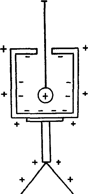 我们讨论如下实验:❶用丝线悬挂带正电的导体球A,从冰桶小口降到桶内部,但不接触,发现金箔张开。这表明由于静电感应,金属远端因相斥而张开。将小球提出桶外,金箔下垂,说明其恢复中性。 ❷在桶内变动正电荷球的位置,但不接触,金箔张角不变,这表明导体壳外壁电荷分布不受壳内电荷位置的影响。 ❸当带正电的小球位于桶内,但不接触内壁,金箔张开,用手接触桶外壁,金箔下垂,表明桶外表面电荷沿人体全部进入大地;再将金属球提出桶外,金箔又张开,且张角与用手触桶外壁前张角相同。检测此时冰桶所带电荷为负电荷,但从冰桶内部取不出任何电荷。这表明,静电感应使中性导体(此处为冰桶)感应出等值异号电荷,并且导体壳电荷分布在导体外表面。 ❹在❶的前提下,将金属小球与冰桶内壁相碰,金箔张角不变,提出小球,小球已不带电。这表明正金属小球与冰桶内壁相碰,并未改变桶外壁电荷分布,只是与桶内壁感应的等值异号的电荷中和罢了。当然,其效果相当于将金属球的正电荷从冰桶内壁全部传递给冰桶,并分布于外表面。但实验表明,将小球与冰桶外壁相碰,绝不能将其电荷全部传给冰桶。 ❺在 ❷的前提下,再放一中性金属球B于冰桶内,无论B在什么位置,是否与A相接触,或接触后再分开,验电器金箔张角均不变。这再次证明了 ❷的实验结论:只要导体壳内电量总和不变,无论位置如何,桶外壁电荷分布不受影响。但若A、B、C相互接触过,将A或B提出到冰桶外,金箔张角都将改变。 ❻将丝绸和玻璃棒同时放入桶中,然后摩擦,验电器的金箔并不张开,但若将丝绸或玻璃棒之一撤出桶外,金箔张开同样的角度,但检验其电荷异号。这表明摩擦使等量异号电荷同时出现。所有这些实验,对静电平衡下的导体,导体壳的性质做了定性定量研究,并为电荷守恒定律提供了实验事实。 |