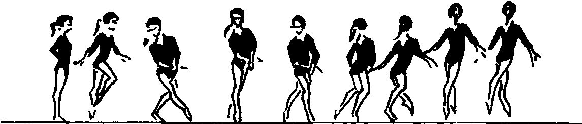 | 释义 | 波尔卡步英文Polka Step的音译。基本舞步之一。在两个滑步换腿前做一单腿快速小跳,即跳—走—并—走。它是19世纪欧洲流行的一种2/4拍子的对舞,是一种轻快活泼的舞步,可向前、向后或旋转。动作要领(向前的波尔卡步):两手叉腰,自然站立。节拍前动作:右脚小跳1次,落地稍屈膝,同时左腿屈膝前下举;1—左腿前伸滑出,右腿并于左脚;2—上半拍左脚再向前走1步,下半拍左脚小跳,落地时稍屈膝,同时右腿屈膝下举。教学重点:❶动作由慢到快,强调跳—滑步—再跳起; 波尔卡步Boerkabu基本舞步之一。是由并步跳、迈步、单脚跳交替组成的舞步。波尔卡起源于捷克的一种排列成行的双人舞蹈,用2/4拍的舞曲伴奏,具有欢快、活泼的特点。作为韵律体操的基本舞步有直膝、屈膝, 可向前、向侧、向后及转体做。其做法: 节前拍左脚小跳,右脚前下举,第1拍,右脚向前滑出做一次并步跳,第2拍,右脚再向前一步跳起,左脚前下举, 第3、4拍, 换脚做, 动作相反。