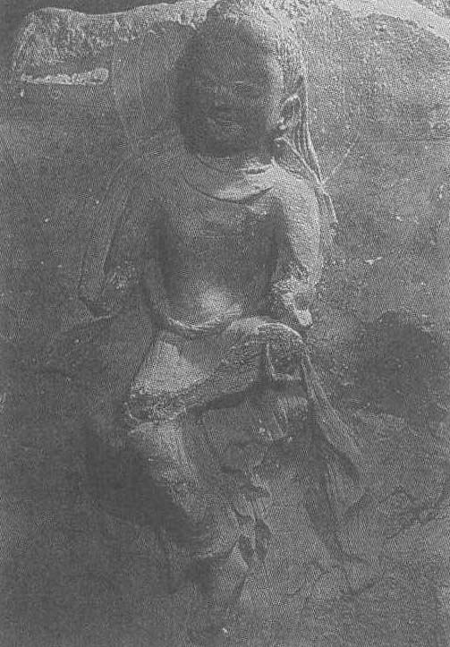 | 释义 | 泥塑思惟菩萨像西秦。高63厘米。甘肃省永靖县炳灵寺第169窟西壁17龛北侧塑像。这尊思惟菩萨像头上无冠,长发披肩,仅以项圈作装饰。上身裸露,下着长裙,裙上有阴线刻就的竖纹。作者着重刻画的是菩萨的面部,脸圆润,富有质感,两目半闭向下垂视,双唇轻抿隐露笑意,其神情似沉浸于对未来世界的美好遐想中。思惟菩萨是释迦牟尼成佛前的形象。