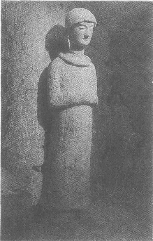 | 释义 | 泥塑男侍童像西魏。高114厘米。甘肃省天水市麦积山石窟第123窟左壁前部塑像。男童与右壁的女童相向而立。头戴圆毡帽,身穿圆领长袍,足登圆头靴,衣袖内的双手拱于胸前。其年龄稍长于女童,面庞线条俊美,眼细长而动人,嘴角露出的笑意略显拘谨,天真烂漫和虔诚圣洁交织于脸上,使人既怜爱又尊敬。此像与女童塑像似出自一人之手,作者在这尊造像上再次显示出他的才华和高超技艺,将人物的年龄、身分、气质和情感准确地表达出来。作者以敏锐的目光观察生活,但又不满足于对生活的忠实写照,而是在写实基础上进行综合概括的艺术创造。这尊男童塑像也是西魏时期麦积山石窟的代表作。