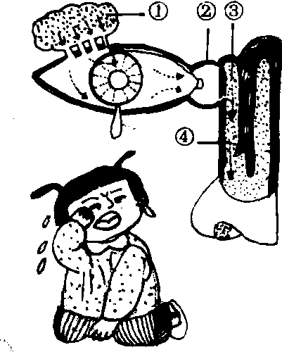 | 释义 | 泪器leiqi眼的辅助装置。由分泌泪液的泪腺和排出泪液的泪道组成(见图)。泪腺有拇指盖大小,位于眼眶的外上侧,经常分泌泪液。泪液不仅能洗刷眼球表面以维持其清洁,还能保持角膜的湿润。此外,泪液中的溶菌酶能抑制细菌的生长繁殖,对眼球起保护作用。泪道包括泪小管、泪囊和鼻泪管。泪液从泪腺的排泄管流向结膜上的泪腺开口,流经眼球表面而集中于内下方进入泪小管,上、下两条泪小管合并流入泪囊。泪囊位于泪囊窝内,下端是鼻泪管,鼻泪管和鼻腔相通。泪腺不但在大哭和大笑时分泌泪液,平时也在不断分泌,只是分泌量少,从鼻泪管流入鼻腔,不易引入注意。若泪道发生狭窄或阻塞时,眼睛总是泪汪汪的,叫泪溢。