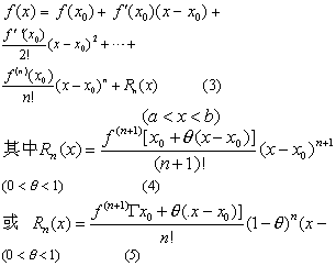 皮亚诺形式: Rm (x) =0 (xm) (x→0) 拉格朗日形式: (0<θ<1)柯西形式: (0<θ<1).当n=0时,带拉格朗日余项的泰勒公式变成 x)=f(x0)+f′[x0 +θ(x -x0)](x-—x0) (0<θ<1) 这就是拉格朗日中值定理,可见泰勒公式是拉格朗日中值定理的推广.泰勒公式是用多项式近似地表示已知函数的重要工具,无论在理论上还是在实际应用上都是重要的.泰勒公式的余项是检验多项式可靠程度的工具,其中拉格朗日余项可解决大部分定量检验的问题. |
